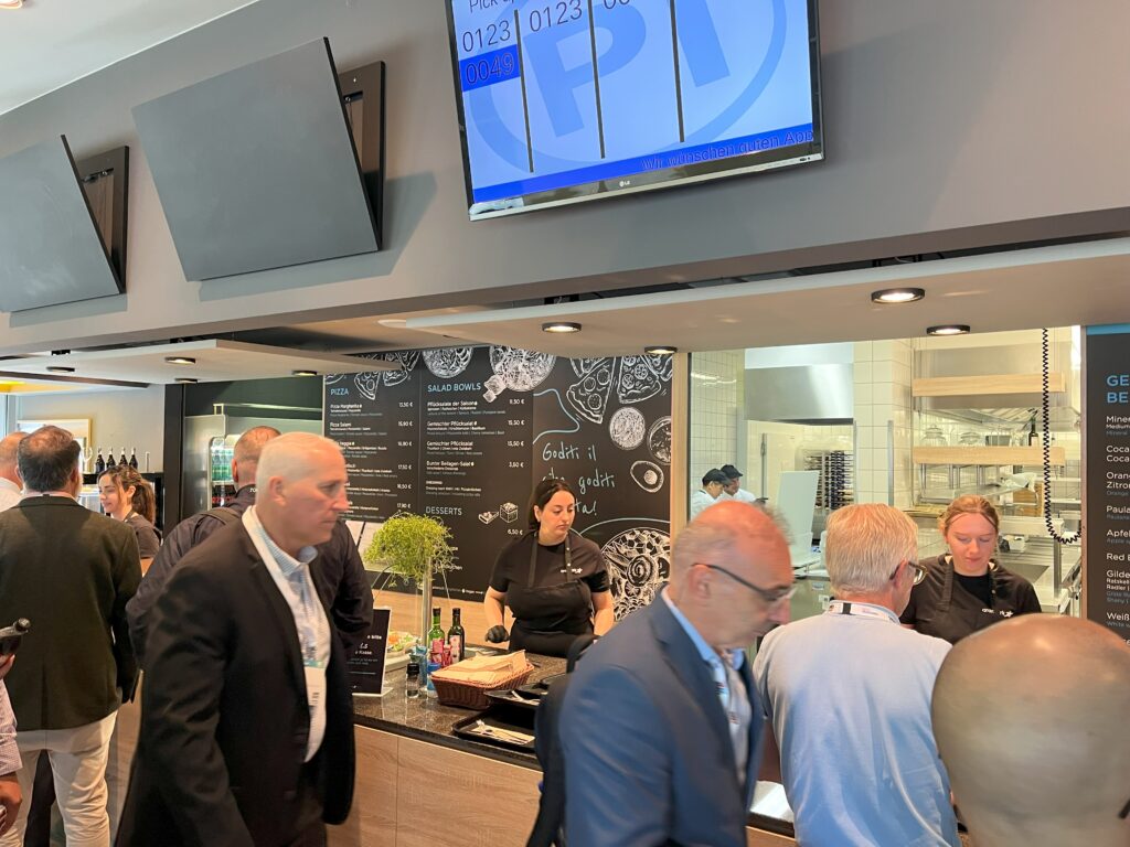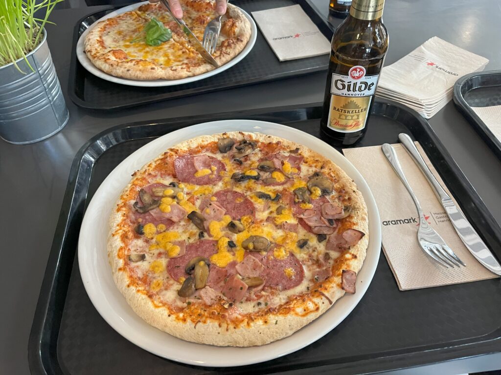 お昼は展示会場内のピザレストランでミックスピザを頂きました。