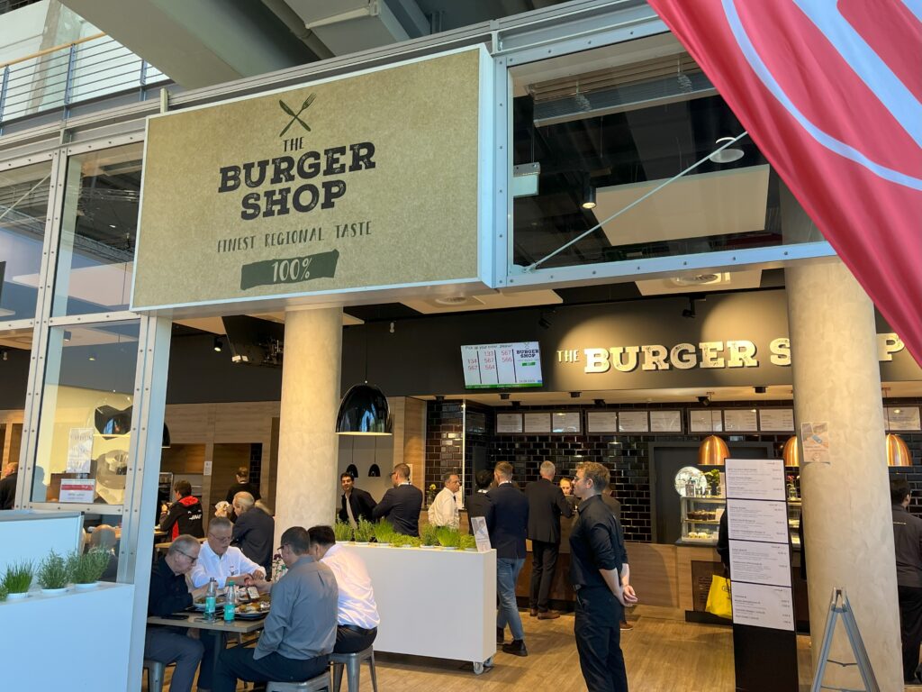お昼は展示会場内のハンバーガーショップへ。